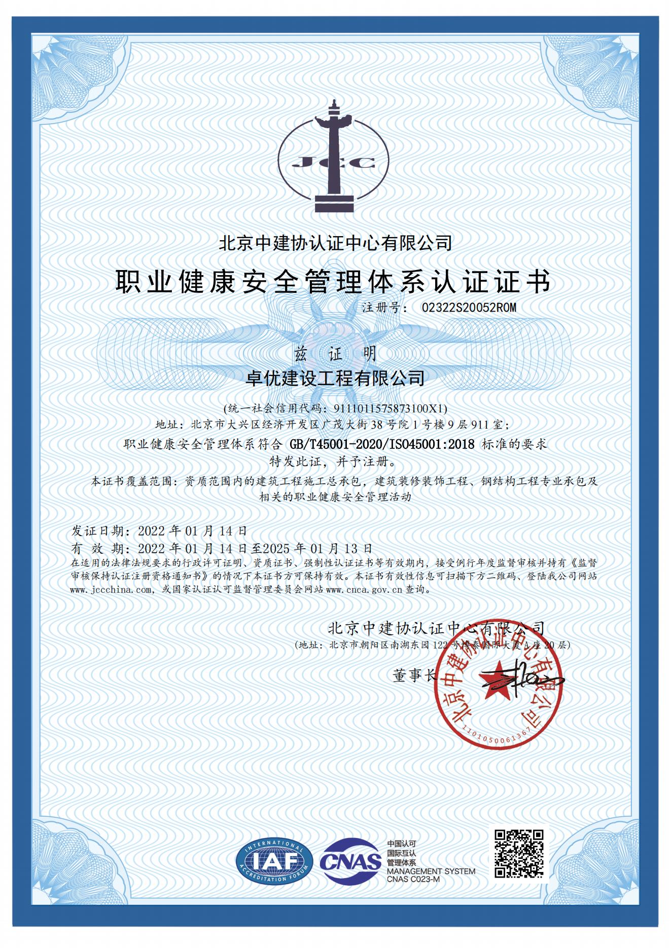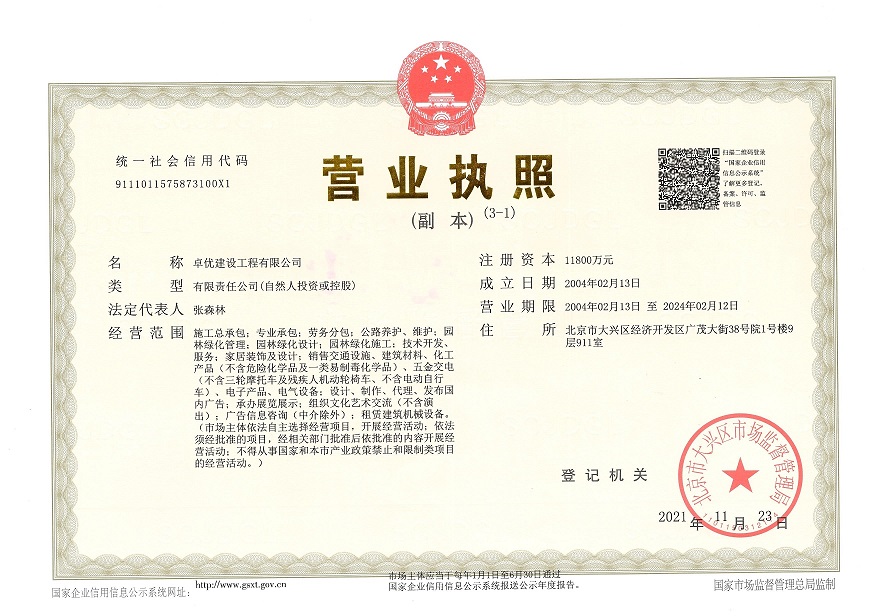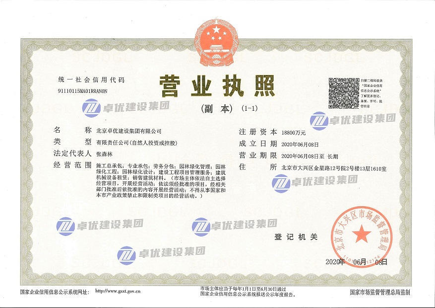 北京卓優(yōu)建設(shè)集團有限公司,注冊資金 1.88 億元,集團資質(zhì):