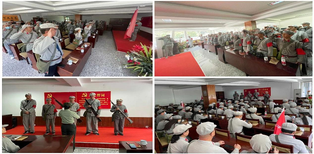 “我志愿加入中國共產(chǎn)黨,擁護(hù)黨的綱領(lǐng),遵守黨的章程,履行黨員義務(wù),執(zhí)行黨的決定,嚴(yán)守黨的紀(jì)律,保守黨的秘密,對黨忠誠,積極工作,為共產(chǎn)主義奮斗終身,隨時準(zhǔn)備為黨和人民犧牲一切,永不叛黨。”嘹亮的宣誓聲回蕩著,高舉的右手、鮮紅的黨旗、鏗鏘的誓詞,讓我們熱血澎湃,心靈受到震撼和洗禮。