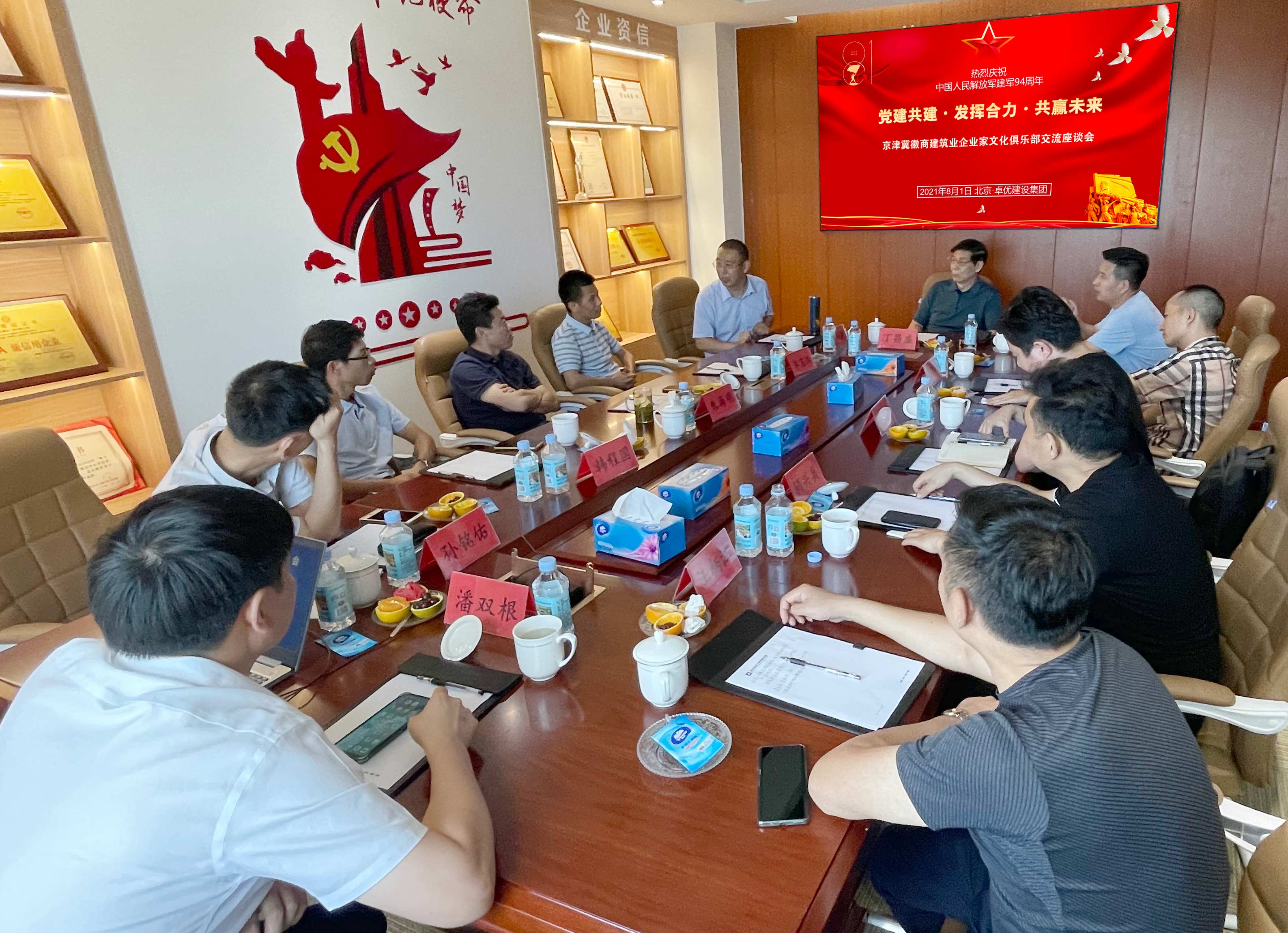 黨建共建,發(fā)揮合力,共贏未來。2021年8月1日京津冀徽商建筑業(yè)企業(yè)家文化俱樂部座談會暨慶八一主題活動在北京卓優(yōu)建設(shè)集團有限公司舉行。
