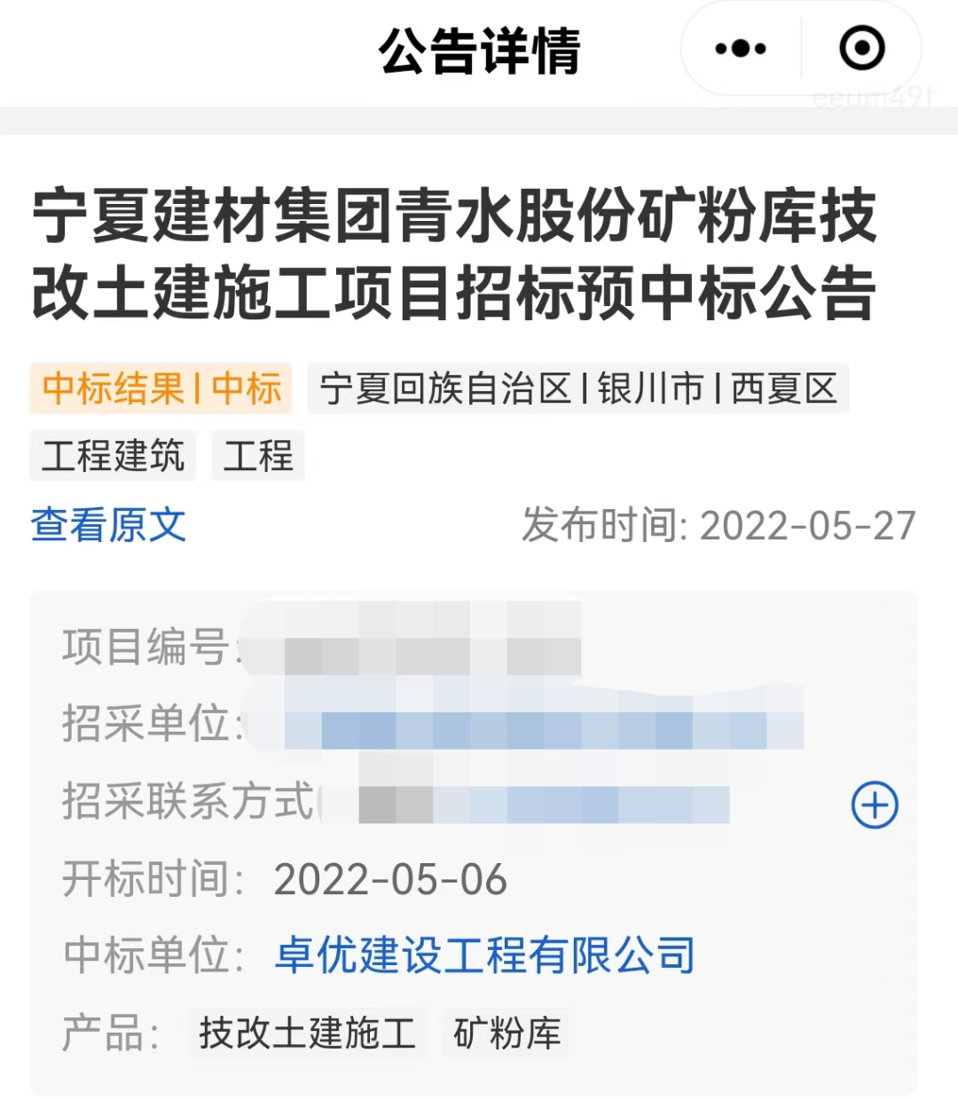 寧夏建材集團(tuán)青水股份礦粉庫技改土建施工項(xiàng)目